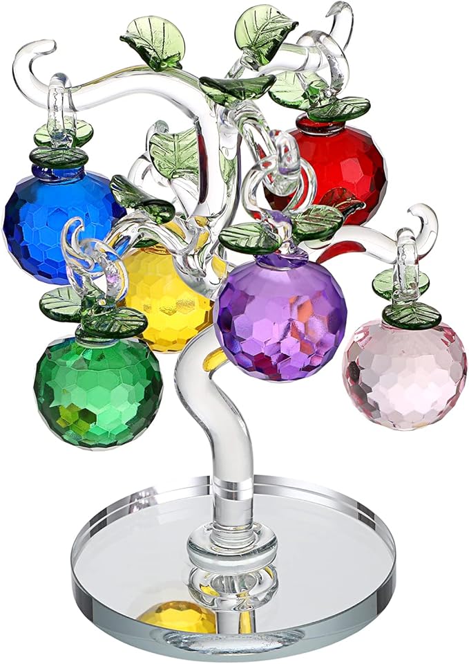 Made of high quality crystal glass, this artificial tree collectible hanging with 5 colorful apple ornaments signifies good luck, warmth, happiness, hope and life. The perfect gift for Thanksgiving, Christmas, Valentines, birthdays or other festivals. Great as a collector piece too.